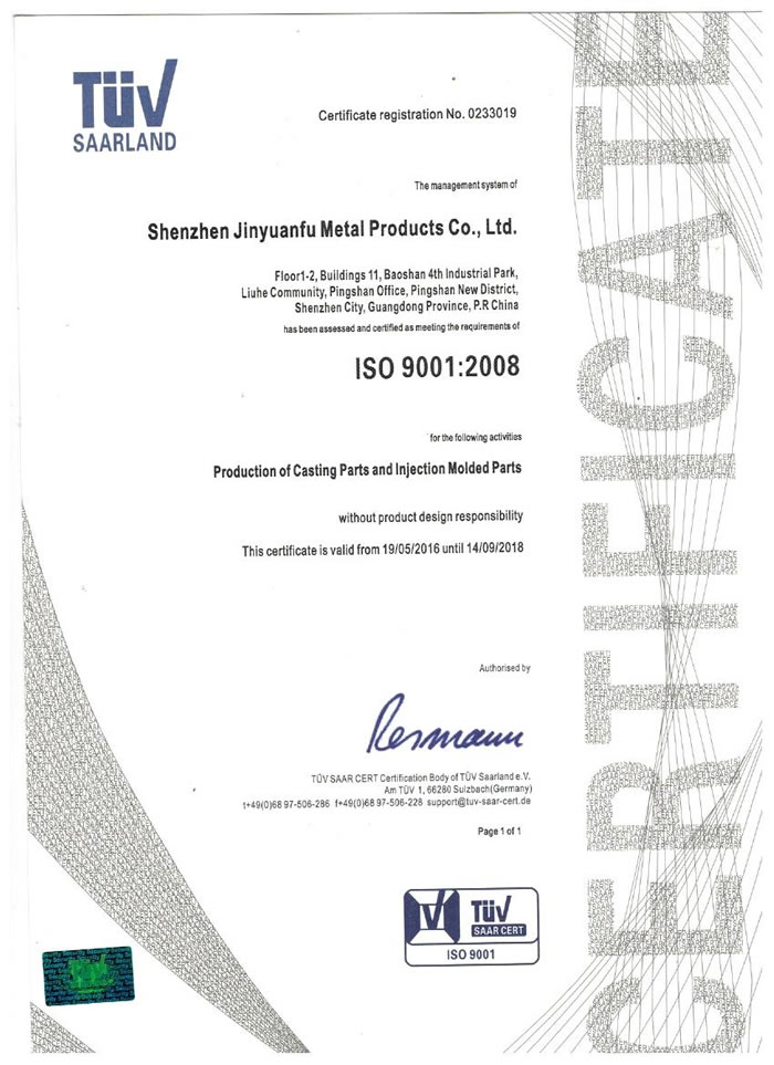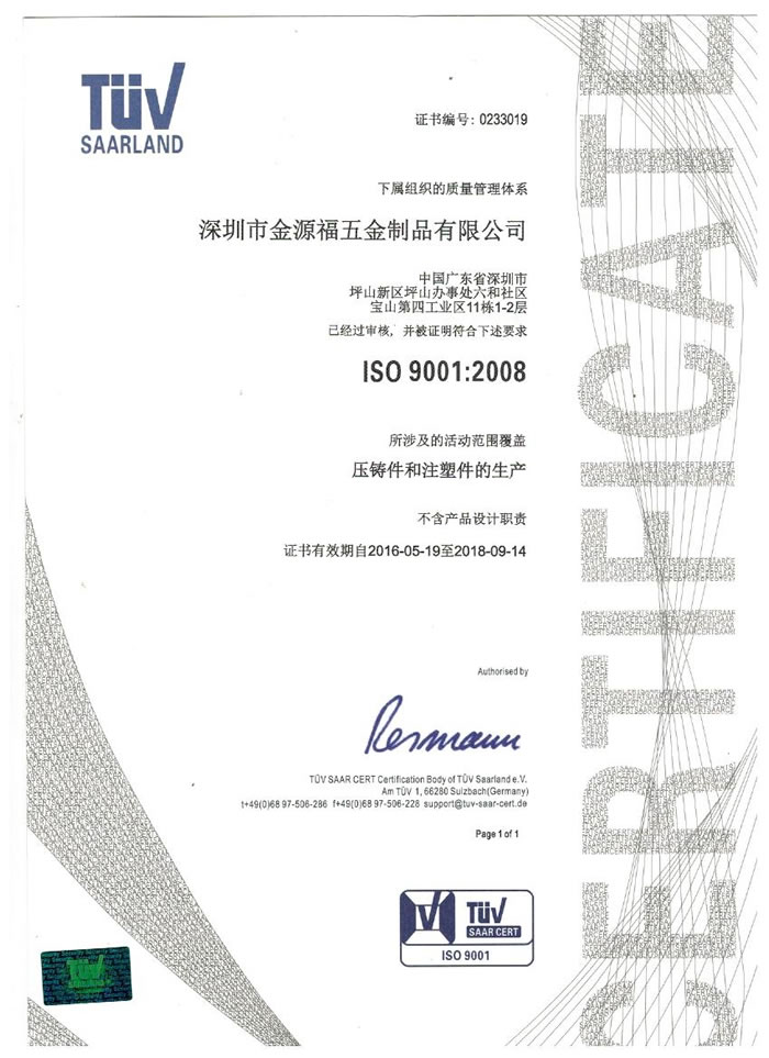 深圳市金源福五金制品有限公司成立于2003年。公司擁有8000多平方米生產(chǎn)廠地、開發(fā)與管理精英人才、技術(shù)專業(yè)、設(shè)備精良、交通便利、服務(wù)周全、具體設(shè)計、開發(fā)、制模、出樣、生產(chǎn)到成品出貨一體化模式生產(chǎn)廠家。已通過ISO9001:2008ISO1440/TS16949:2009國際質(zhì)量體系認(rèn)證。專業(yè)生產(chǎn)鋅合金壓鑄、鋁合金壓鑄產(chǎn)品、汽車配件、汽車后視鏡支架、車載導(dǎo)航散熱器、LED散熱器、LED燈罩、數(shù)碼電子五金結(jié)構(gòu)件、家具五金裝飾件、標(biāo)牌(LOGO)等五金壓鑄產(chǎn)品。